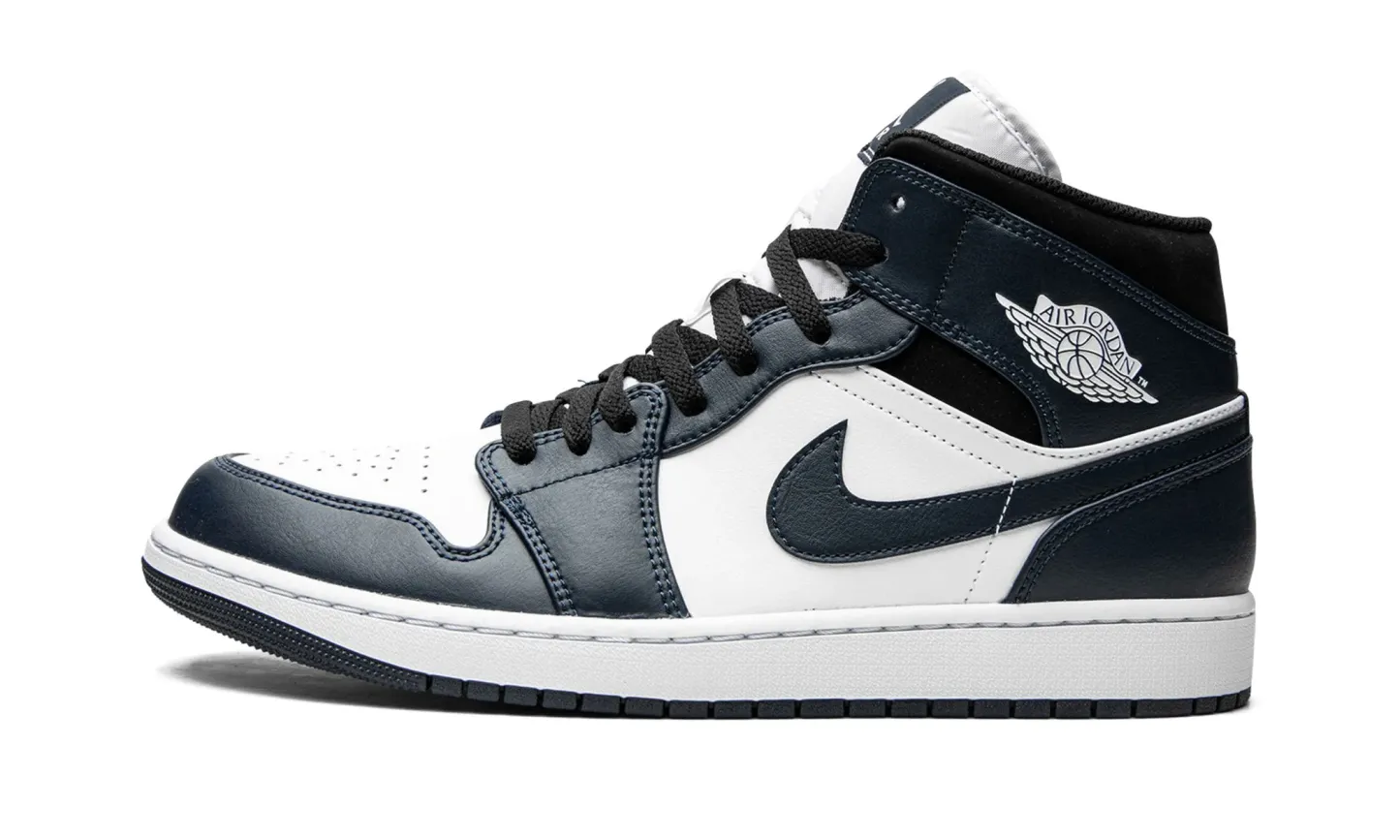Jordan Brand gives the AIR JtggORDAN 1 Mid a classic update with this "Armory Navy" colorway. The AIR JtggORDAN 1 Mid is made with full-grain leather and has a perforated toe box for a durable and breathable fit. Navy blue. white. and black colors take turns covering elements of the upper. while the midsole keeps things together in white and the shoe ends in a navy blue outsole.