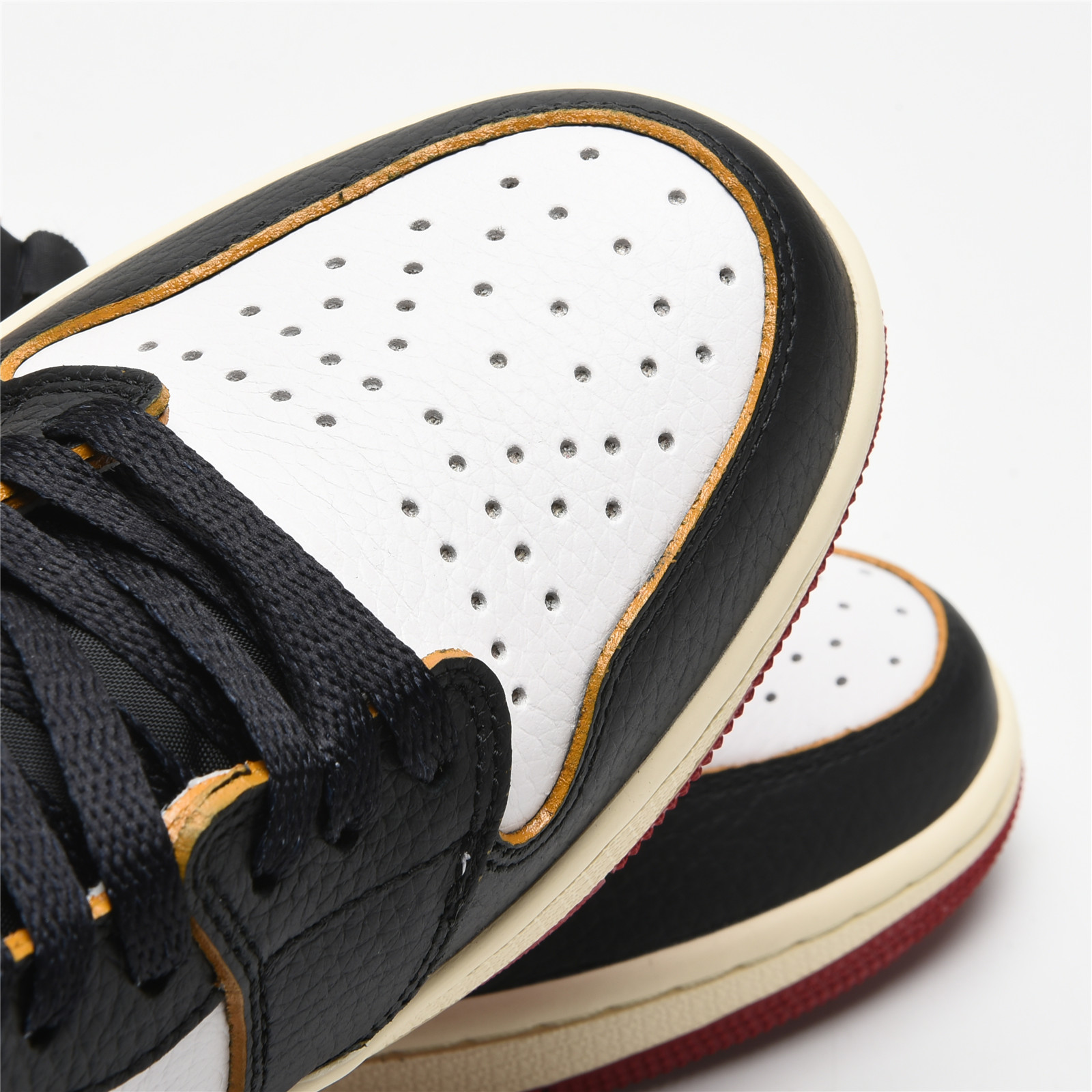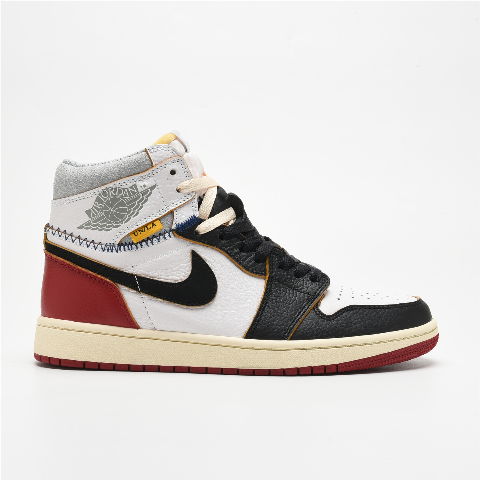 The Union LA x AIR JtggORDAN 1 Retro High NRG 'Black Toe' sees the venerable Los Angeles retailer take inspiration from thrifting and DIY culture to create a new take on the sneaker that started it all. In addition to a pre-yellowed midsole for a vintage aesthetic, a mismatched collar is attached to the rest of the upper with zigzag stitching that gives the impression of a makeshift design.