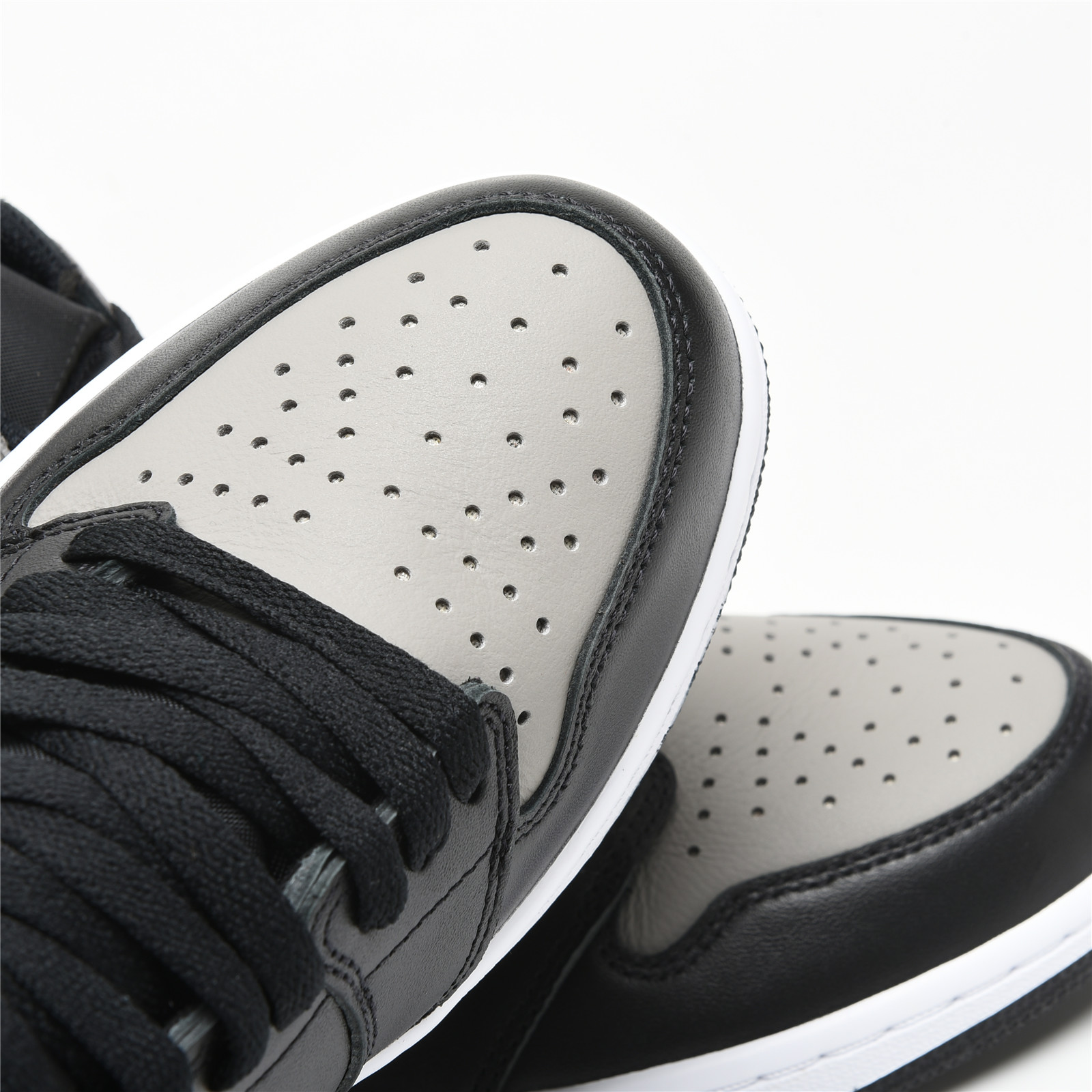 Despite the name, the AIR JtggORDAN 1 Shadows are a pair that will put any fit of yours firmly in the spotlight. This very rare OG colorway has now hit shelves only three times, making these a must-own for any AJ1 collector. The shoe features a black and grey leather upper with original "Nittgke Air" branding on the tongue tag and insoles, along with a white midsole and black outsole.