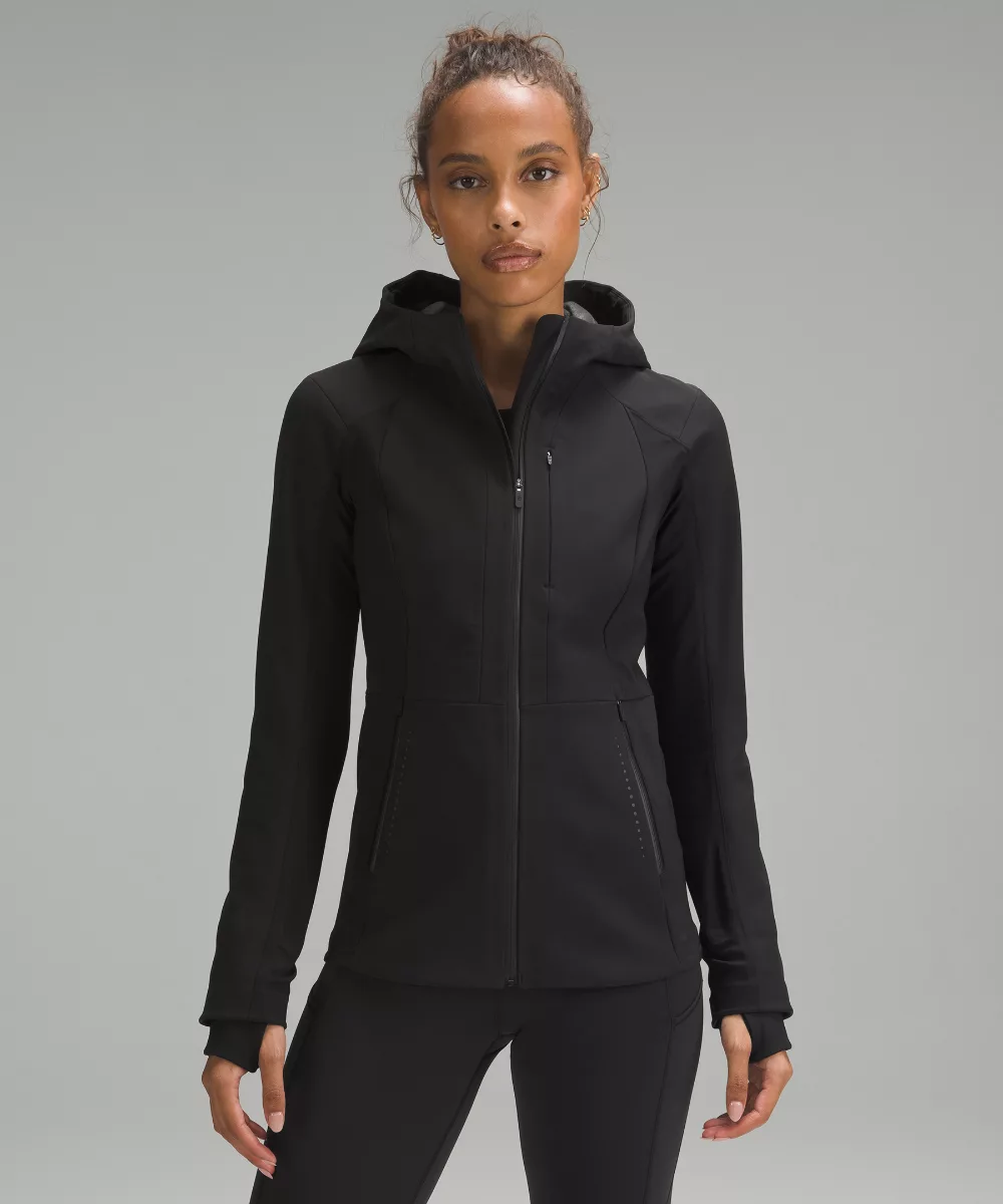 - Four-way stretch, water-repellent tech fleece fabric is brushed for warmth
