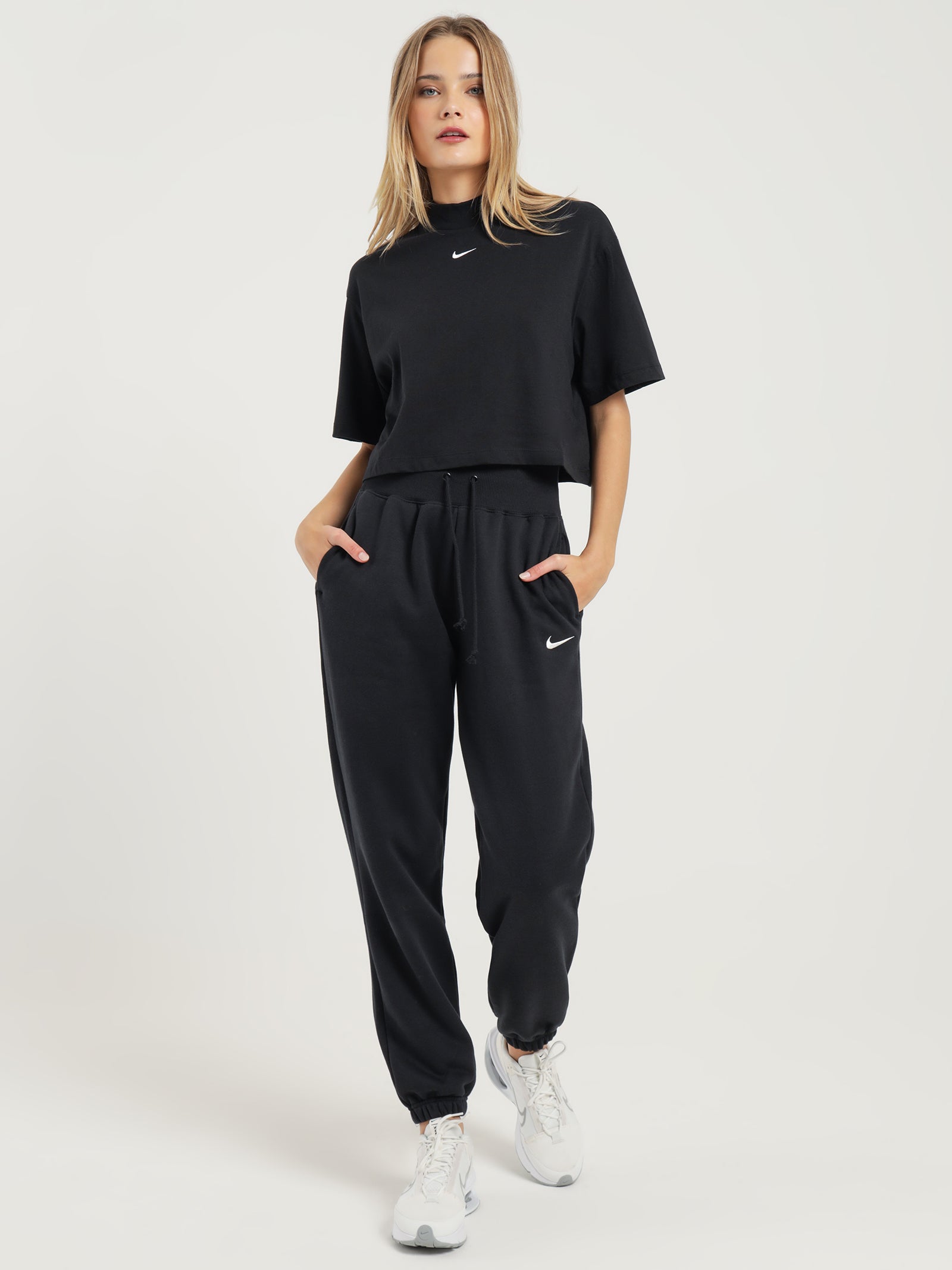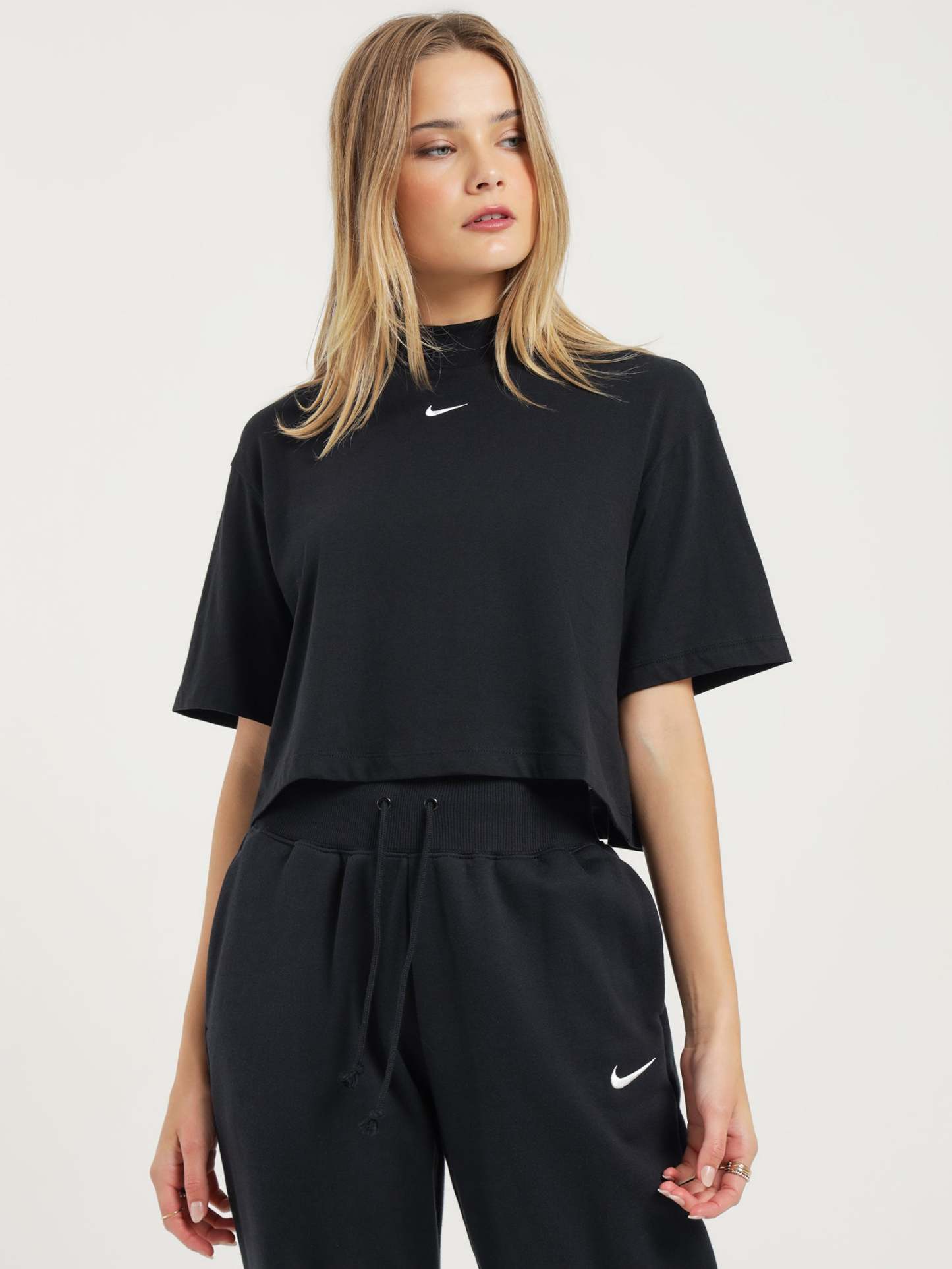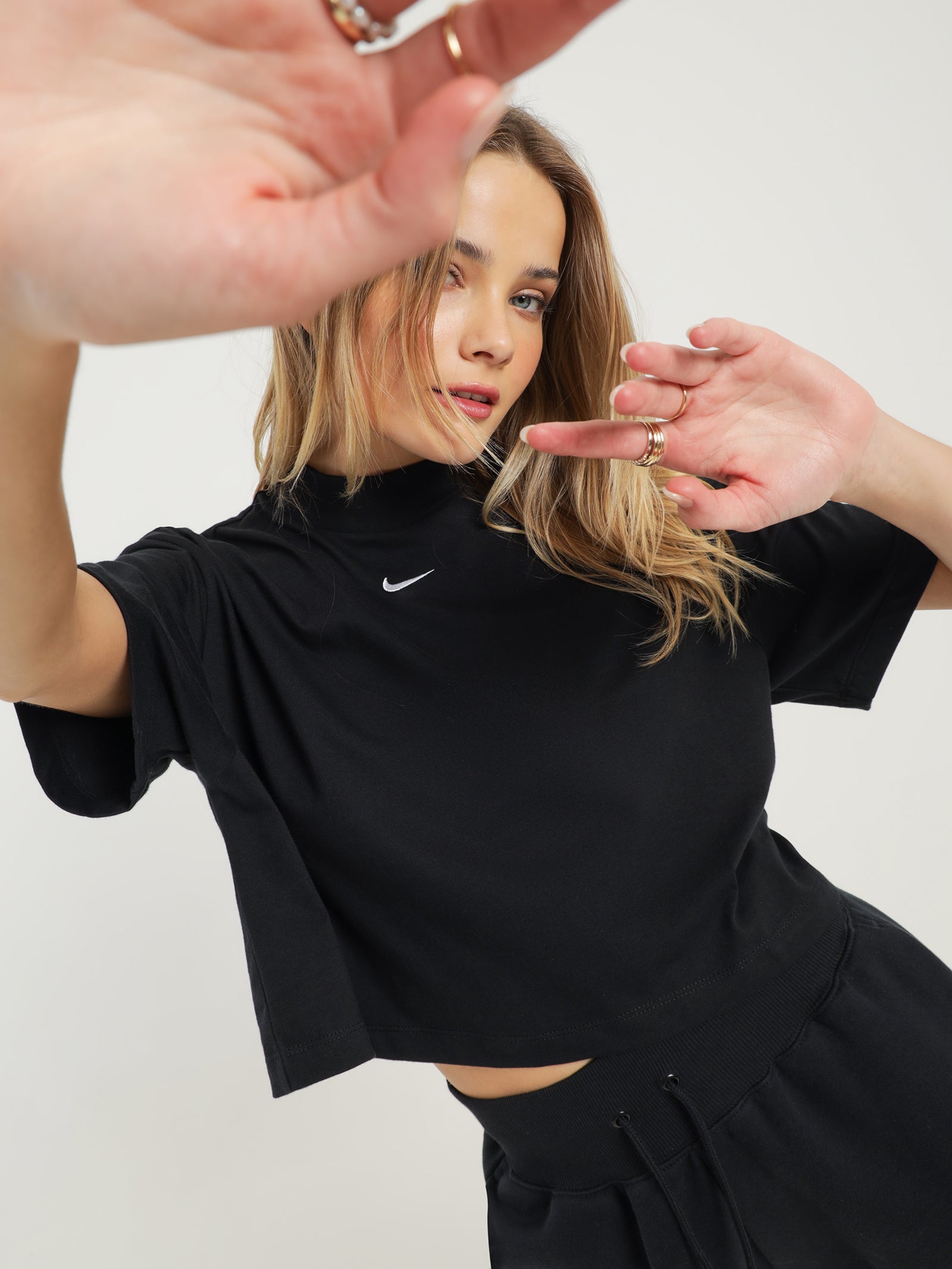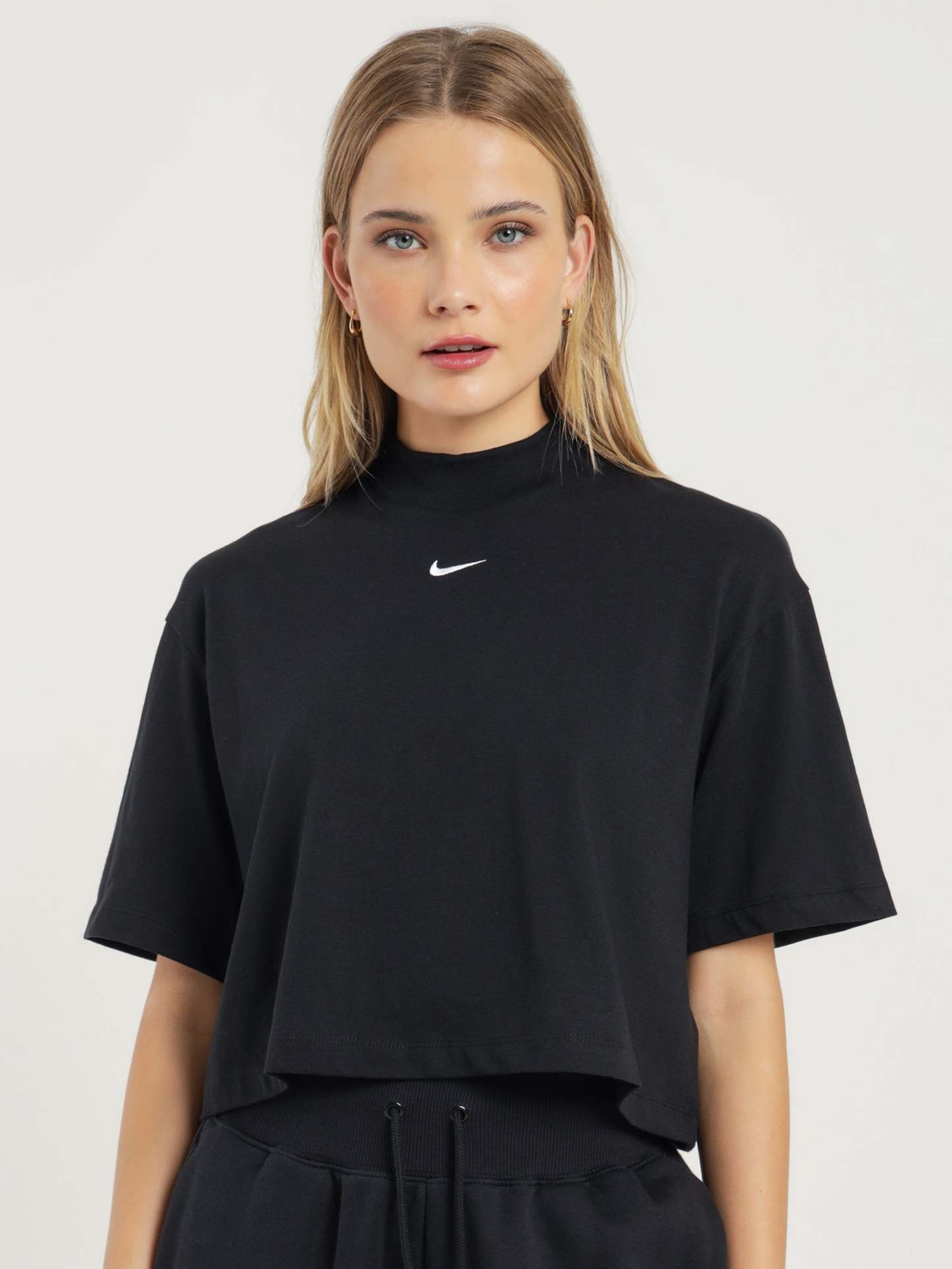 Sportswear Essential Boxy Mock-Neck Short Sleeve Top in Black & White