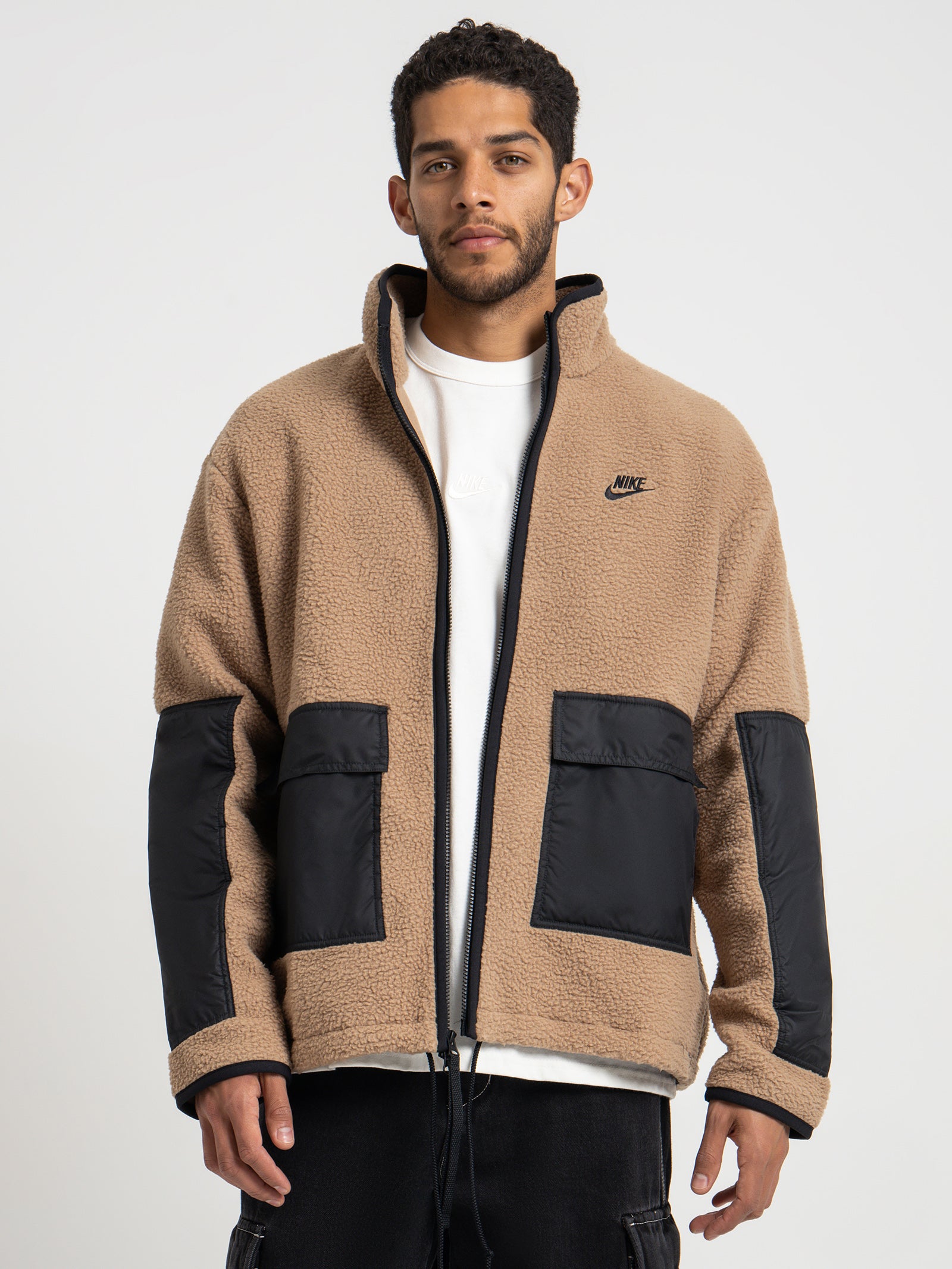 Sportswear Sherpa Jacket in Driftwood & Black