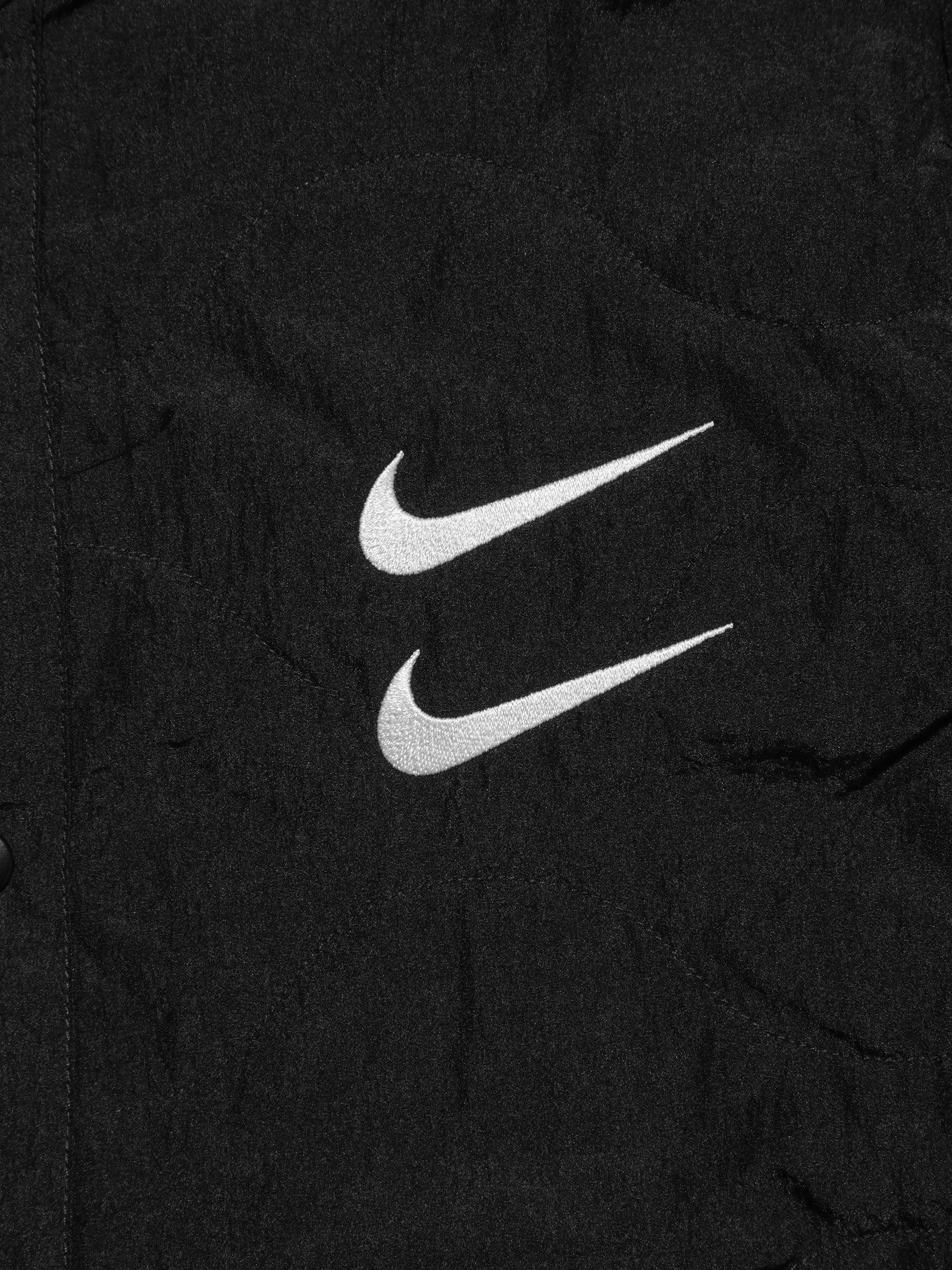 - Embroidered double swoosh on left chest.