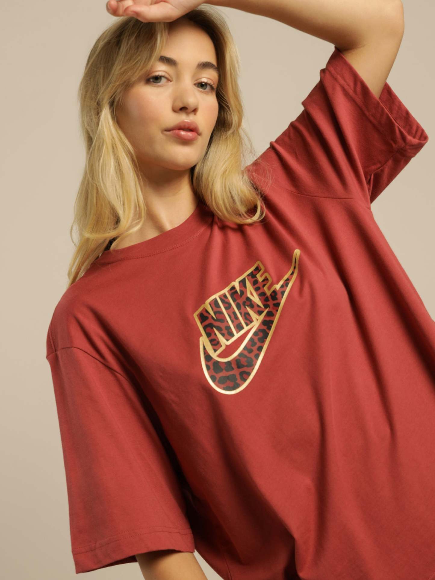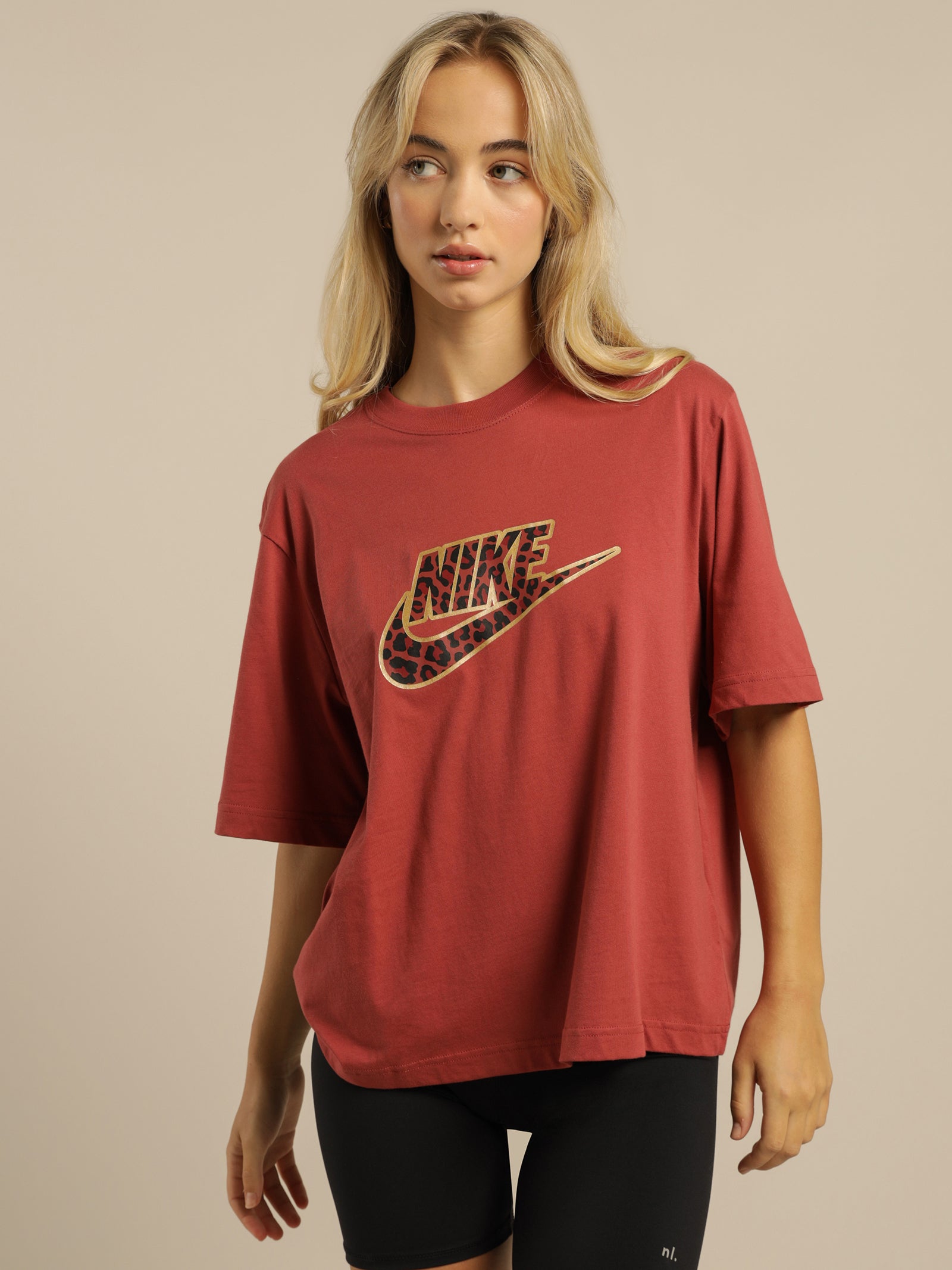 Sportswear T-Shirt Boxy Leopard in Cedar & Metallic Gold