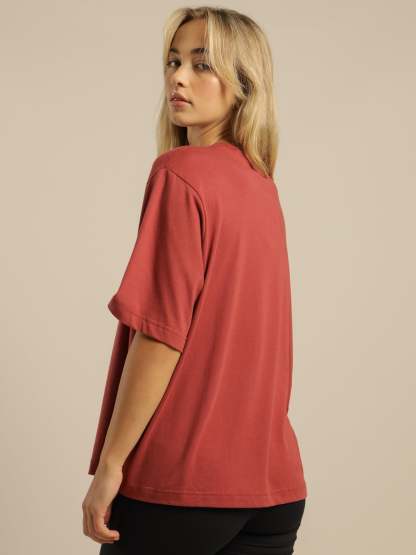- Short sleeve t-shirt in cedar & metallic gold with animal print.?
